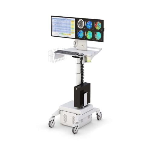 Este carro de ordenador rodante con brazo de doble monitor permite a los profesionales médicos y a los pacientes acceder a los ordenadores médicos en cualquier habitación. Ayuda al usuario a eliminar las molestias e inconvenientes de trasladar al paciente a otras salas donde se encuentran los ordenadores médicos fijos. Proporciona al usuario una movilidad rápida y sin esfuerzo, ya que está diseñado para un despliegue rápido durante las emergencias hospitalarias.
