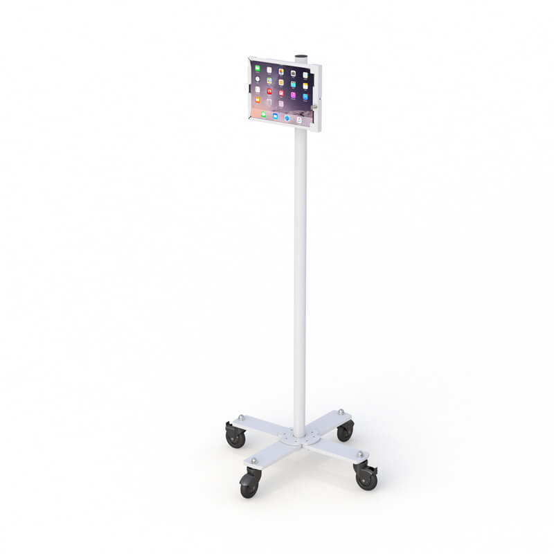 Un carro de tableta móvil para la introducción de datos a distancia. es ligero y ajustable en altura con un marco de bloqueo seguro para la tableta. Este carro puede moverse fácilmente de un lugar a otro. Diseñado específicamente para ser ligero pero robusto y seguro.