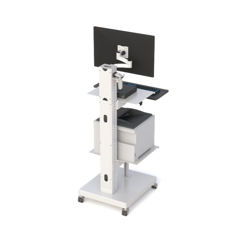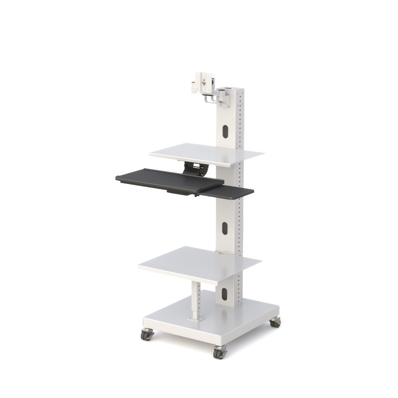 AFC’s Mobile Multi-Level Computer Workstation is engineered for high-performance environments where durability, adjustability, and mobility are essential. Designed with a modular vertical track system, this workstation provides complete flexibility for arranging monitors, keyboards, printers, and accessories at ergonomic heights that best support daily workflows.