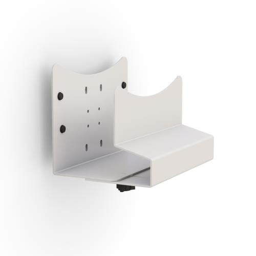 A Wall mounted CPU holder that accommodates most sizes of CPU casings. Height adjustable through use of the wall track attachment.