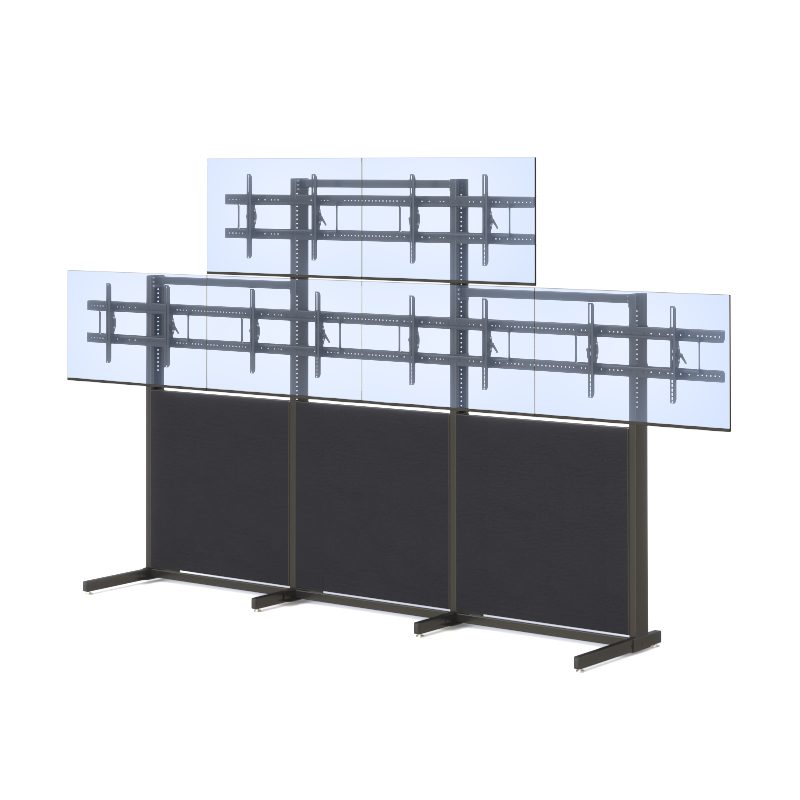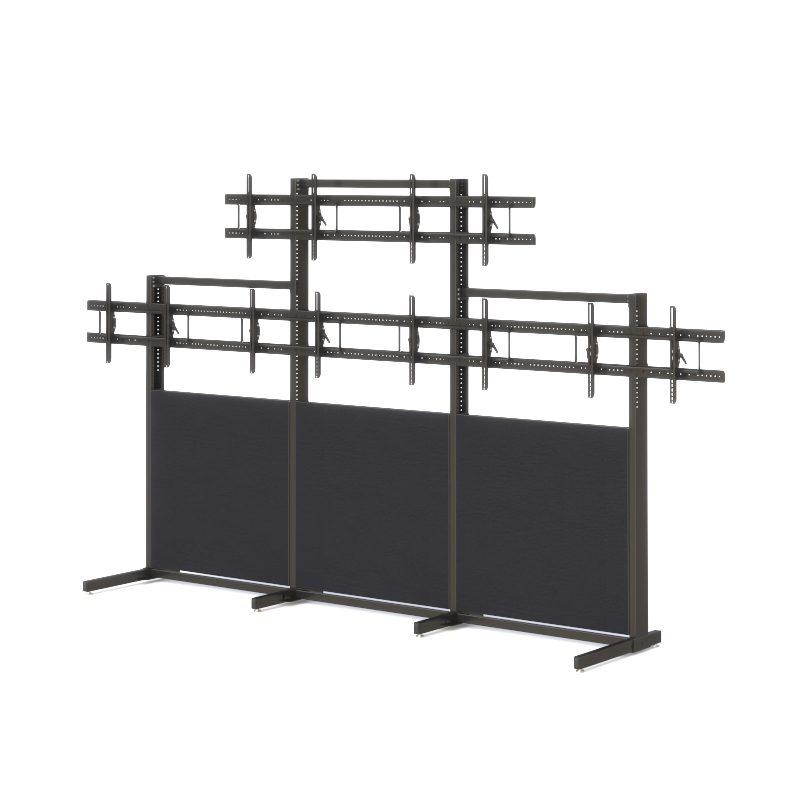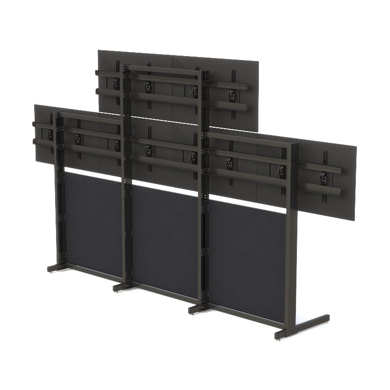 The Freestanding Multi-Monitor Display Wall System is a heavy-duty, floor-supported structure designed for control rooms and operations centers requiring secure mounting of multiple large displays. Featuring six adjustable monitor mounts, height-track positioning, a steel frame, and an acoustic fabric partition, this system delivers stability, flexibility, and long-term durability for 24/7 environments.