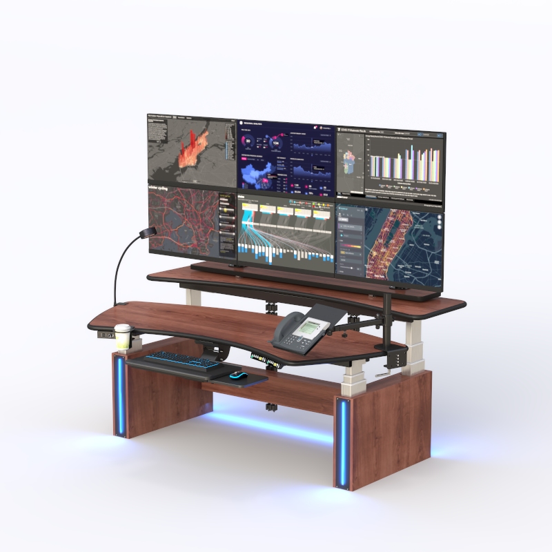With electronic height adjustment (26″–50″), integrated cable management, and a retractable keyboard platform, this workstation improves comfort, productivity, and visibility in demanding 24/7 environments.