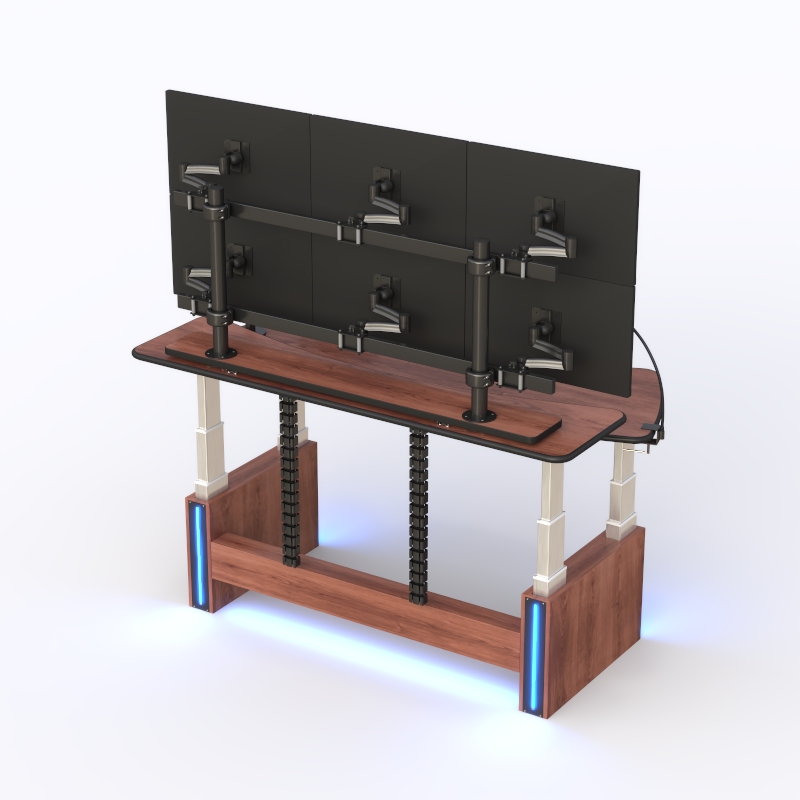 With durable construction, intelligent cable routing, and customizable monitor configurations, the AFC workstation delivers a modern command center solution designed for productivity, comfort, and continuous operation.