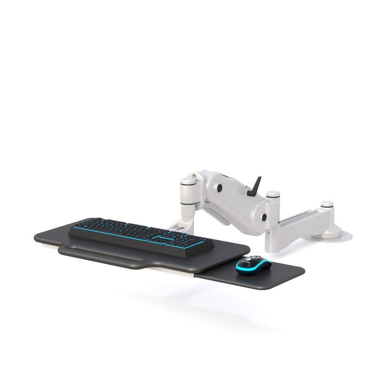 Its foldable keyboard platform helps save space when not in use, while the integrated sliding mouse tray delivers flexible left- or right-side operation, accommodating a wide variety of user preferences. Built with heavy-duty steel construction and smooth multi-pivot rotation points, the arm extends generously to support dynamic typing positions and retracts fully when stowed.