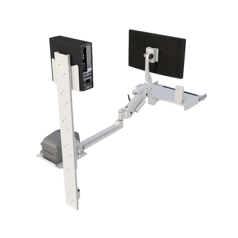 Designed for healthcare facilities, industrial workstations, and high-performance technical settings, this system integrates multiple components—including CPU storage, printer support, and scanner mounting—into a compact, organized, and highly functional solution.