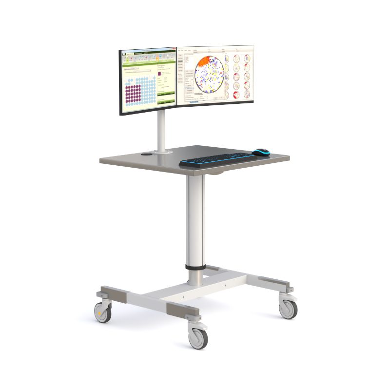 This mobile workstation is an ideal solution for cleanroom operations requiring non-perforated work surfaces, ergonomic adjustability, secure display mounting, and contamination-controlled mobility.