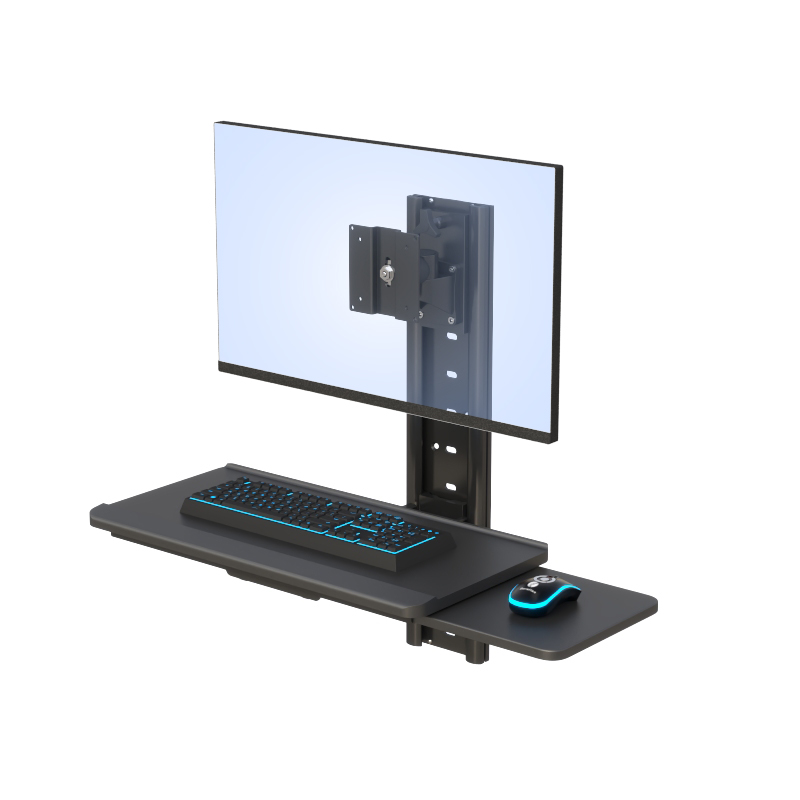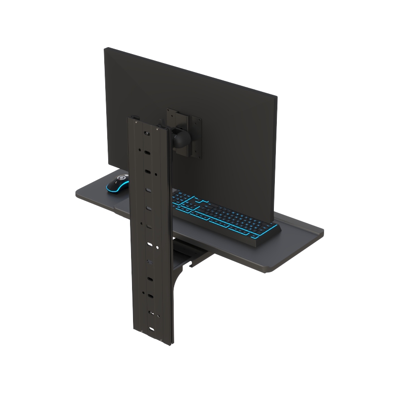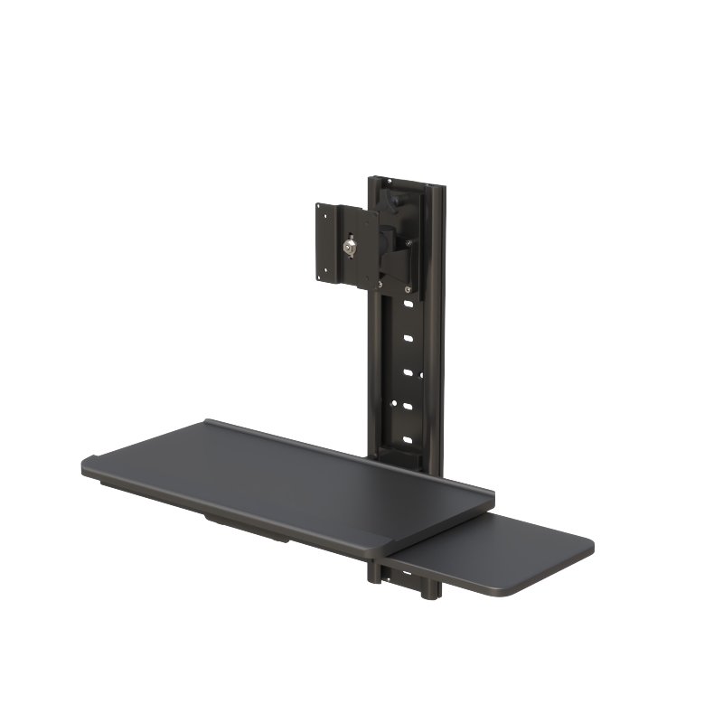 This wall-mounted computer workstation is designed to maximize workspace efficiency while maintaining ergonomic comfort and flexibility. Built with a durable vertical wall track system, it allows users to securely mount a monitor and operate a keyboard and mouse within a compact footprint—ideal for environments where space optimization is critical.