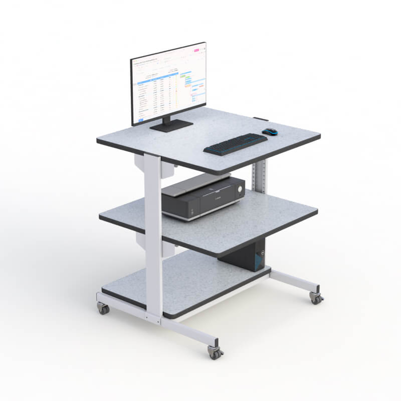 - Lower Shelf: 36” W x 23” D for equipment, documents, and peripherals