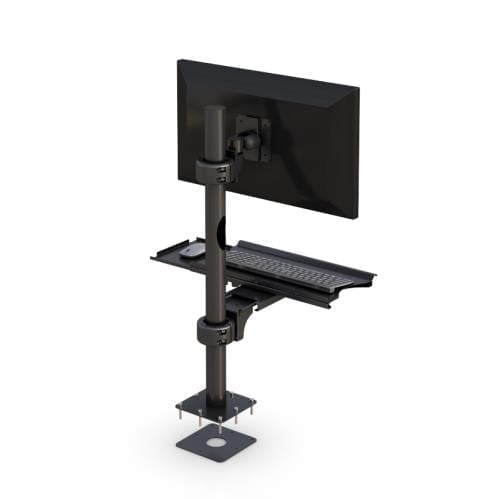 Desktop Computer Monitor Pole Mount with Fixed Keyboard Tray