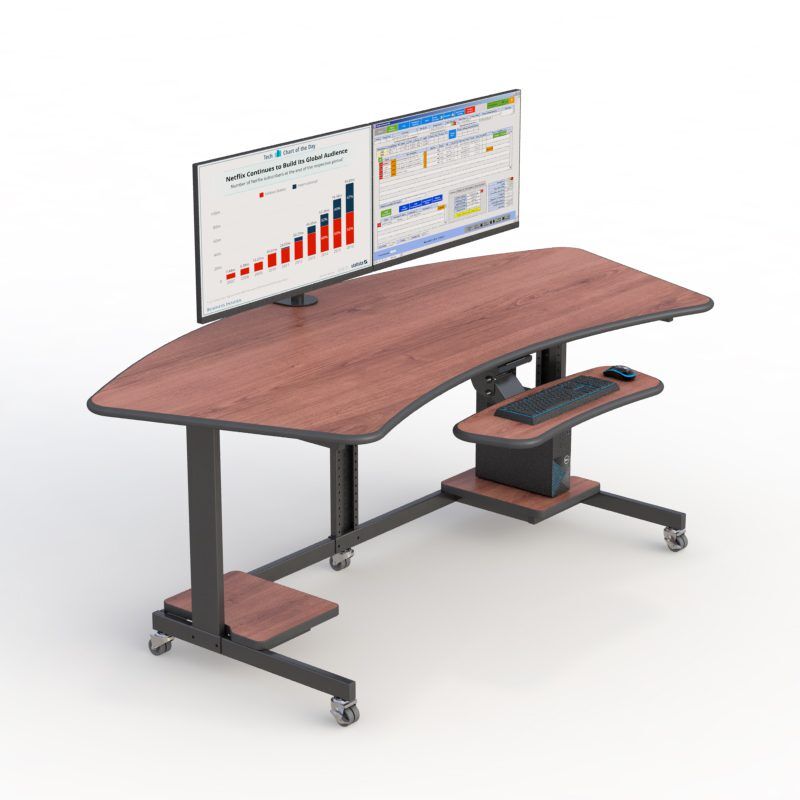 - Custom shaped table for computer with pole mount