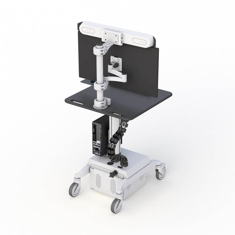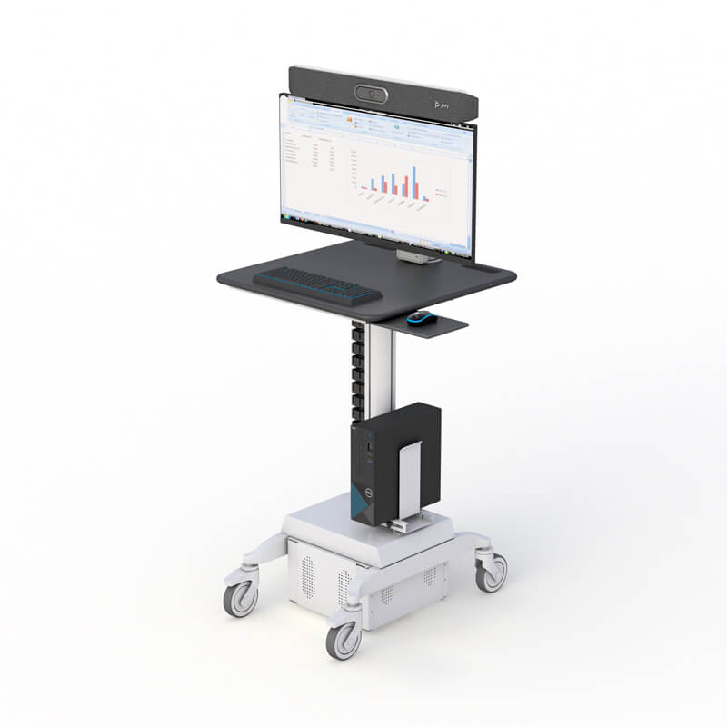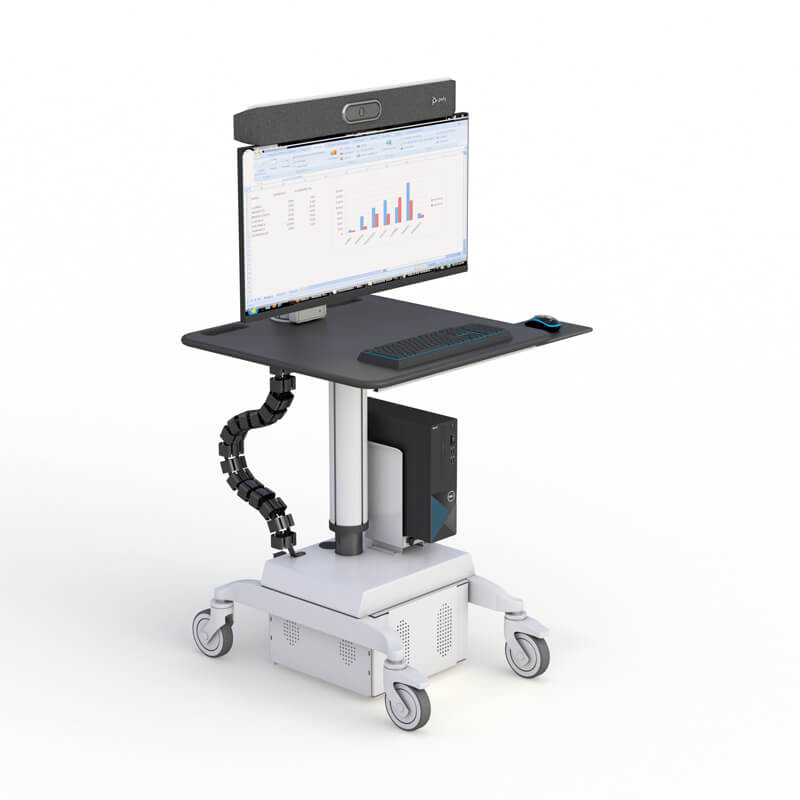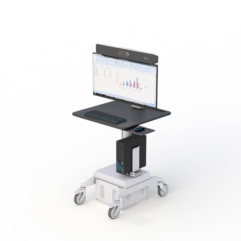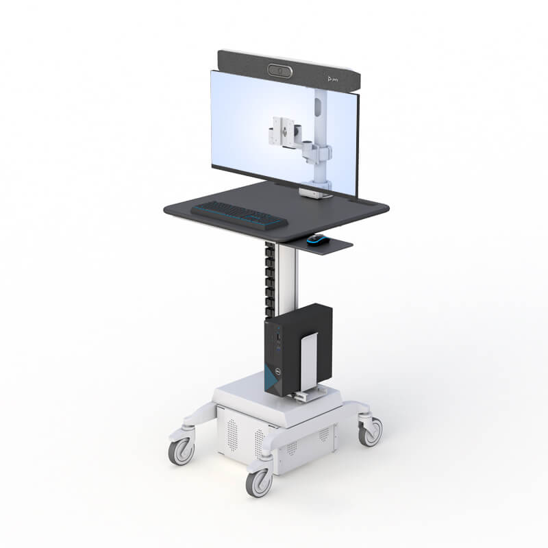 Ergonomic Monitor Cart with Integrated Camera Mount for Poly Studio X50