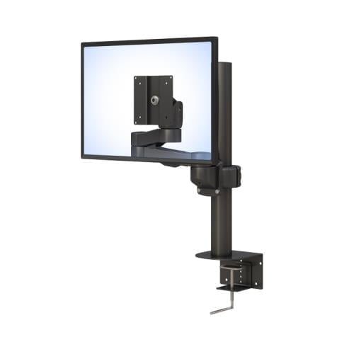 It has an easy clip-on clamp that fastens firmly on any desk and table edges, providing a versatile monitor mount on top of existing office furniture.