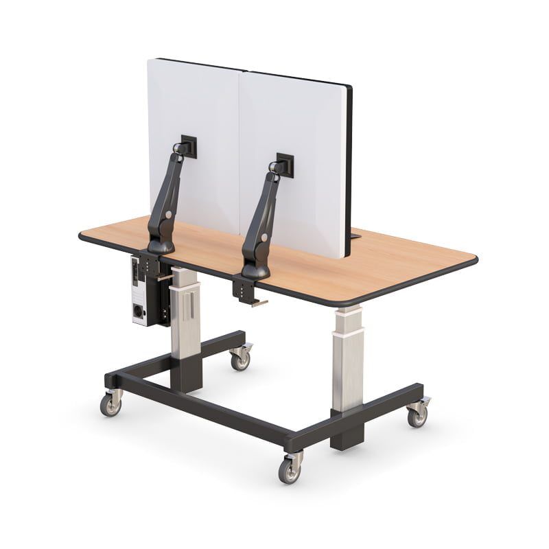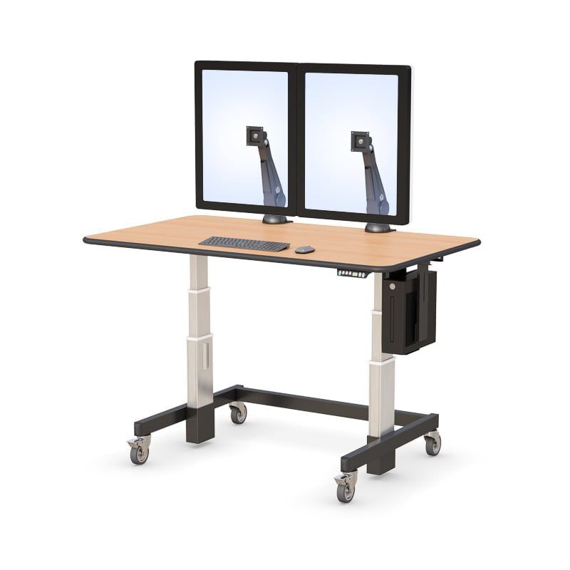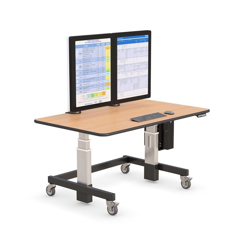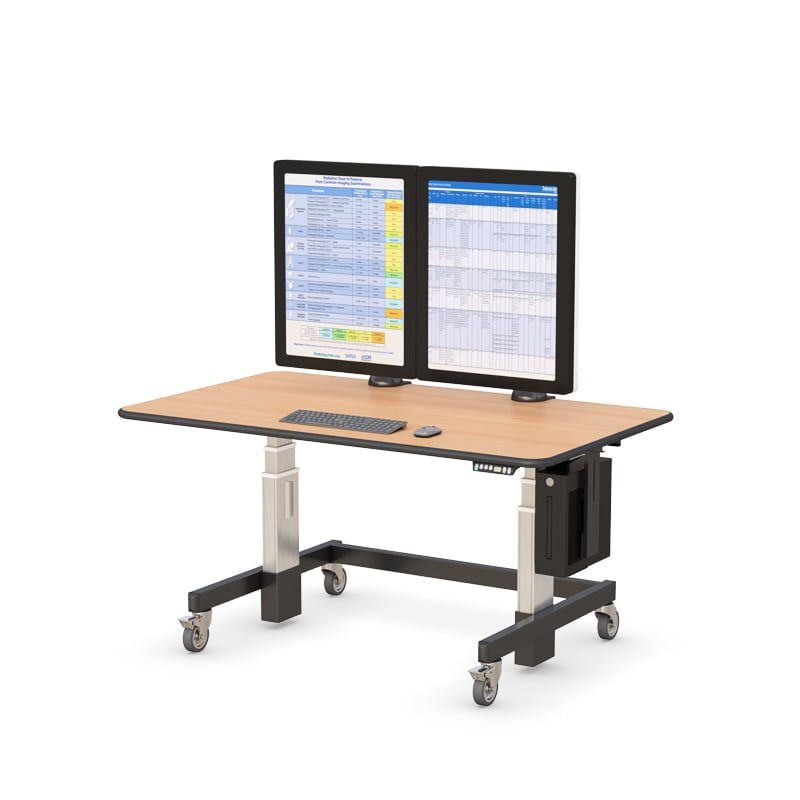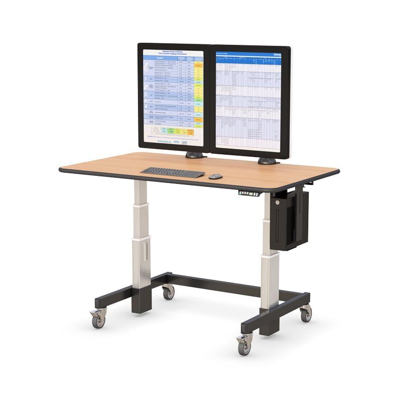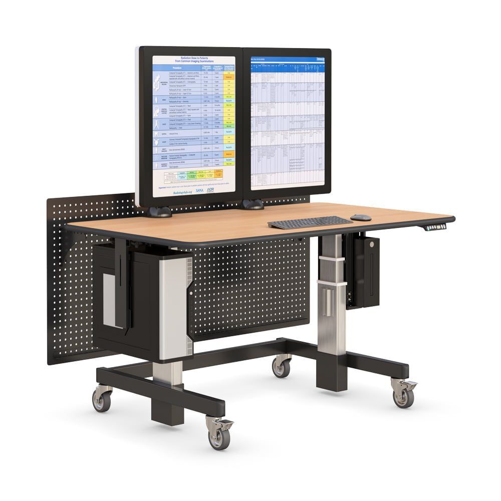 This Height Adjustable Radiology Desk with CPU holder and heavy-duty wheels or glides are designed specifically for your environment, whether sitting or standing. Standing desks are now becoming a trend for stop-and-go office traffic. This cardiologist reading room desk also provides convenient height level preferences at the push of a button.
