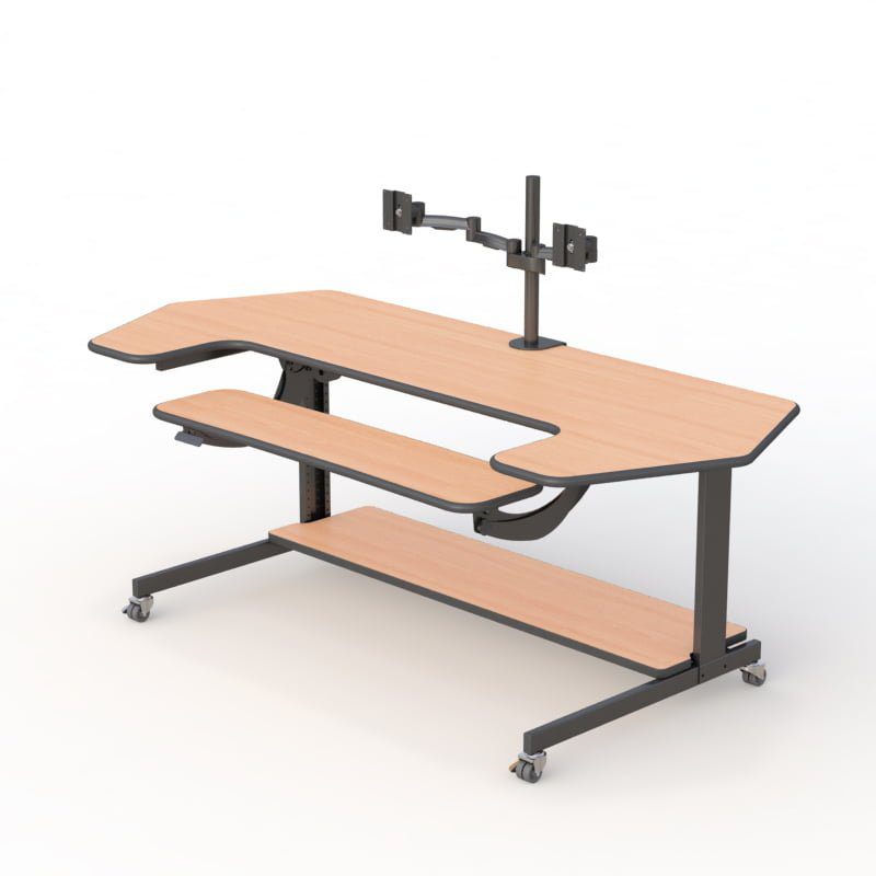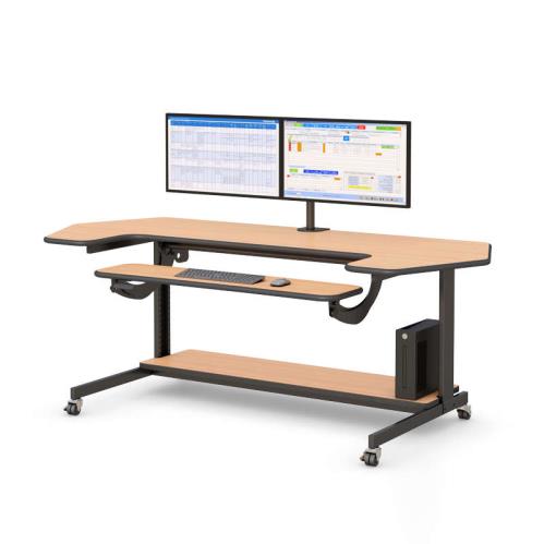 A perfect office companion, this SmartCart, hexagon-shaped computer table comes equipped with a swing lift arm, Z-arm mount for two flat-screen monitors, and a swing lift keyboard arm that can be adjusted according to the user’s needs.
