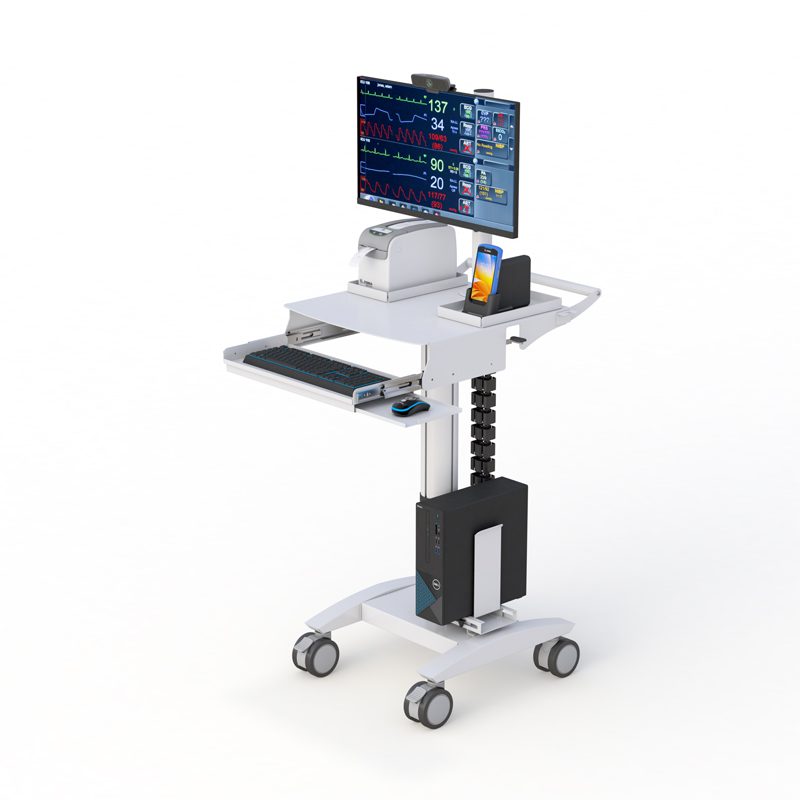 This Medical Mobile Computer Server Cart helps medical professionals gain maneuverability inside the room where it is stationed. It helps medical professionals handle data for them to analyze and present the data to their patients. Equipped with mounts for Zebra printers, this cart can easily access patient data on the go.