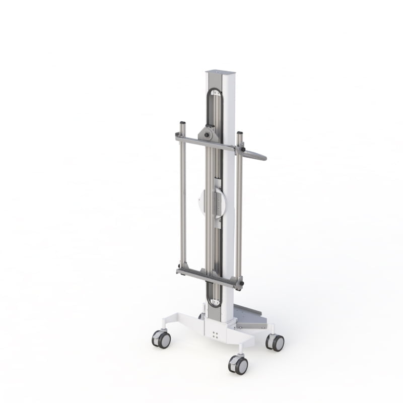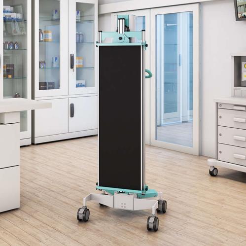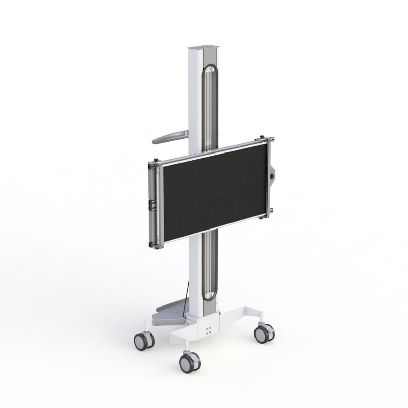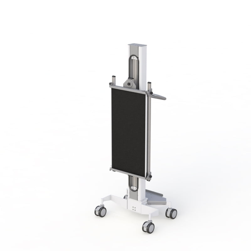 The MACH-ONE is a height-adjustable mobile X-ray cassette holder mobile cart used in computed radiography applications. It is available with either electronic or pneumatic height adjustment and accommodates cassettes of many different sizes and shapes.
