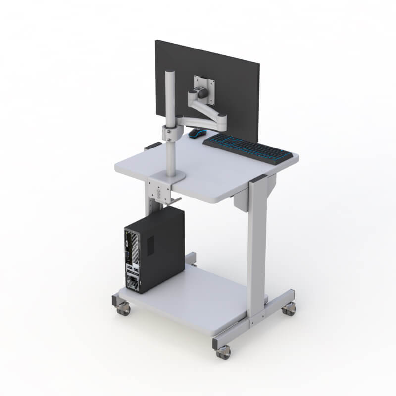 Mobile Utility Computer Cart with Desktop Work Surface at sitting height of 30″