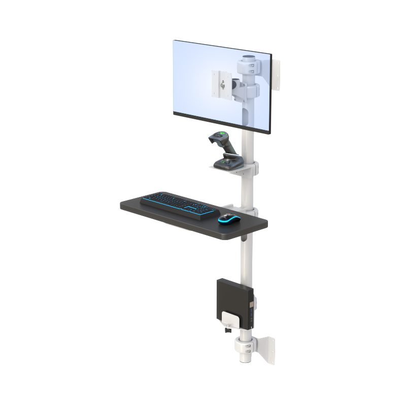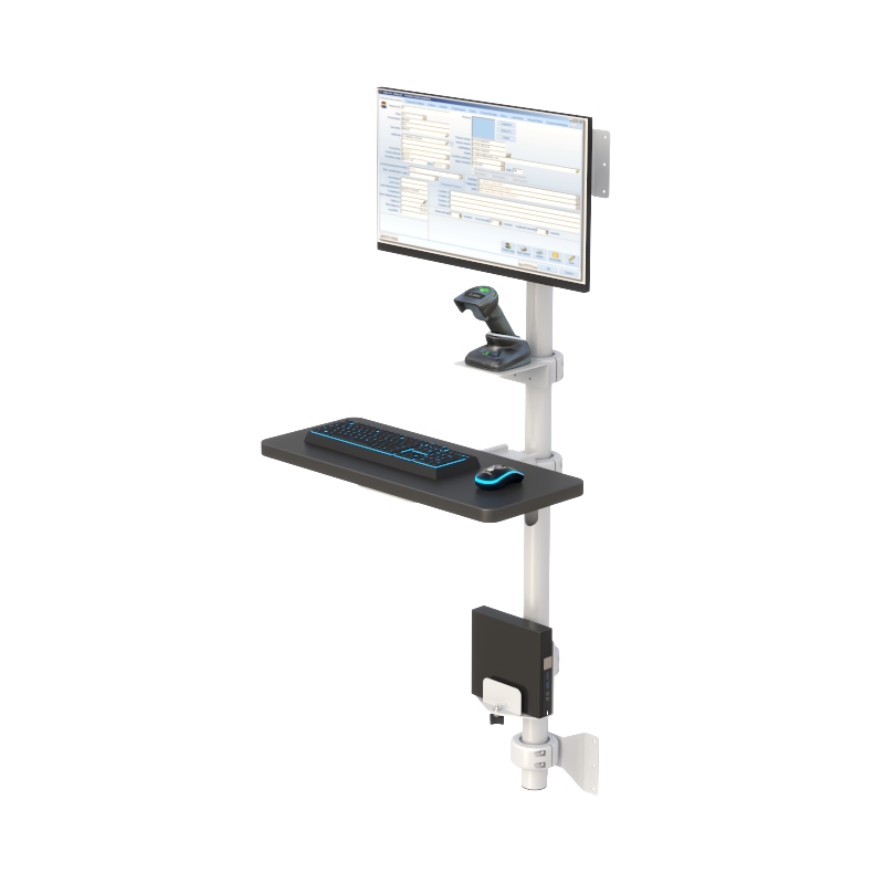This pole-mounted computer workstation is designed to deliver a compact, ergonomic, and highly adaptable solution for environments where space efficiency and functionality are essential. Featuring a vertical mounting system, this workstation supports a full computing setup including monitor, keyboard, scanner, and CPU—making it ideal for healthcare, industrial, and professional applications.