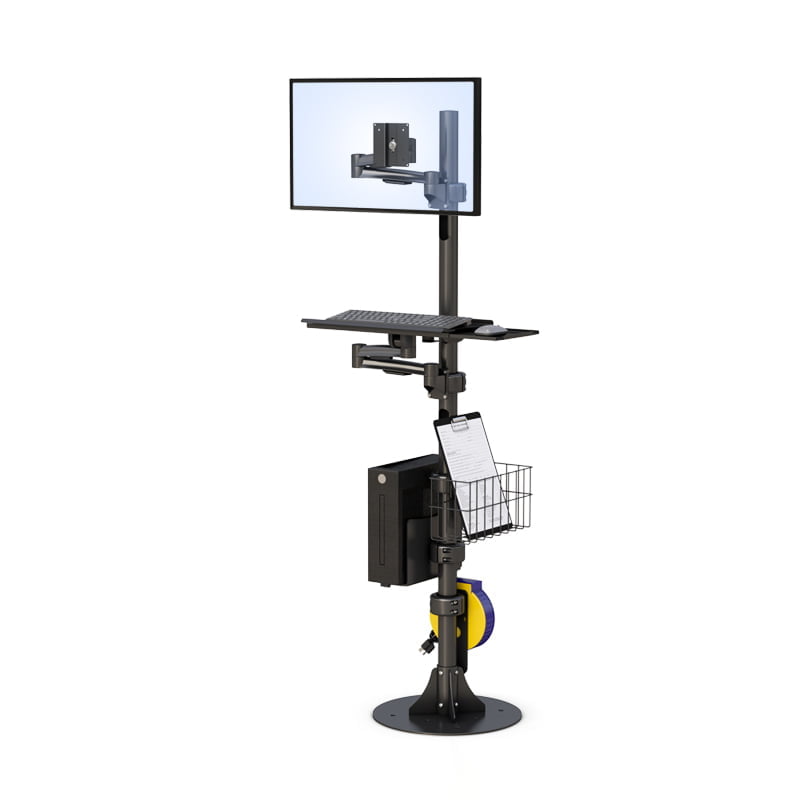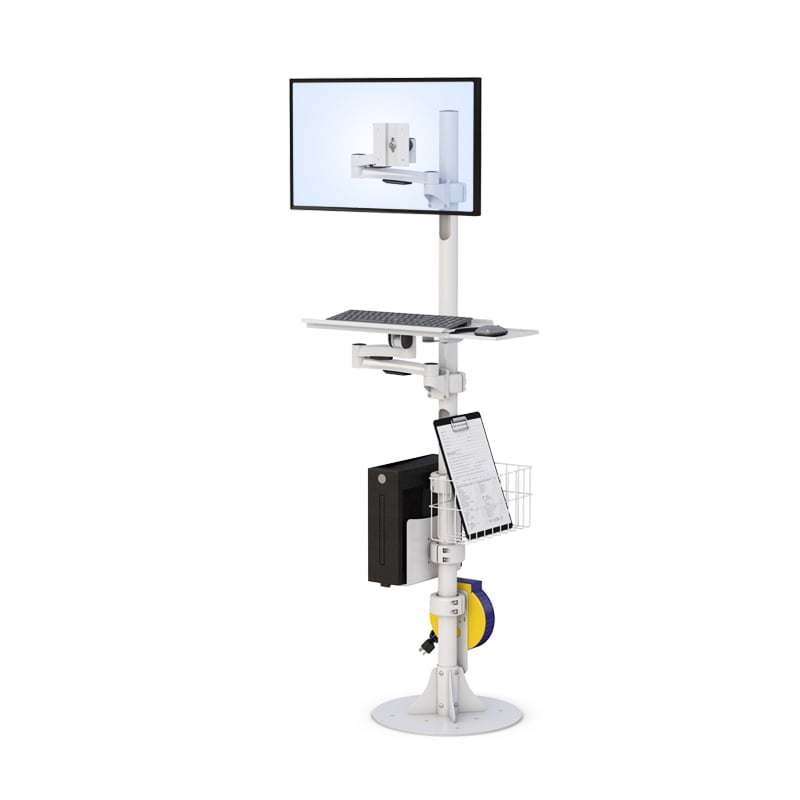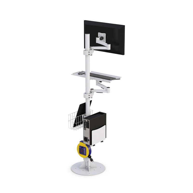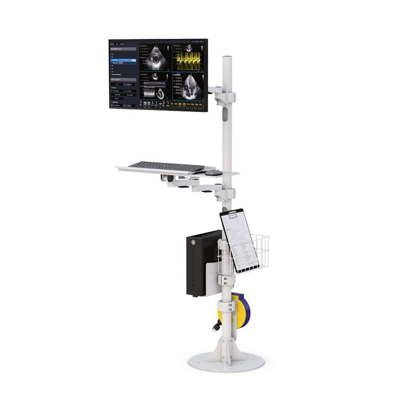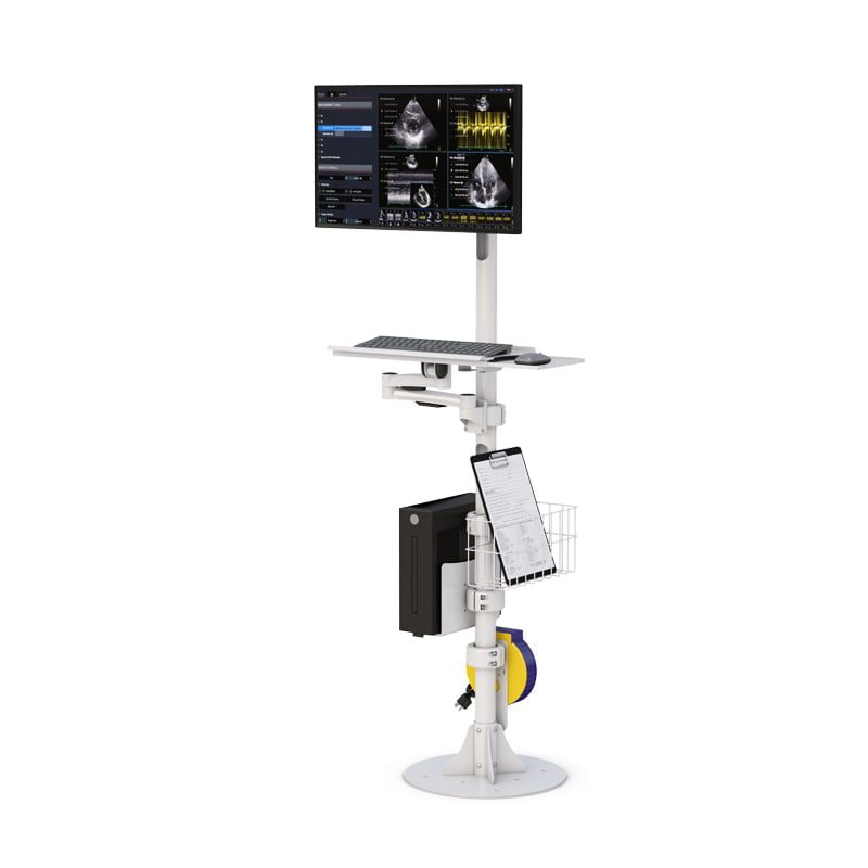 This high quality medical Computer Stand Floor Mount helps the user to work stress-free as all the necessary accessories are attached to the center pole and are within easy reach. It also gives convenience to the user through its flexible(adjustable) features, and it stands within a small and convenient footprint, creating more space and minimal obstruction.
