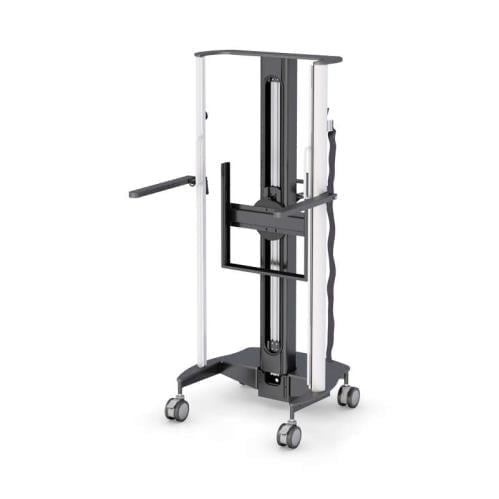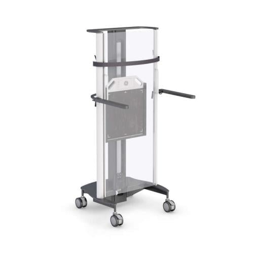 - Two front locking casters secure placement of the stand