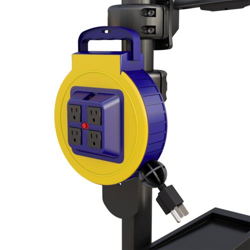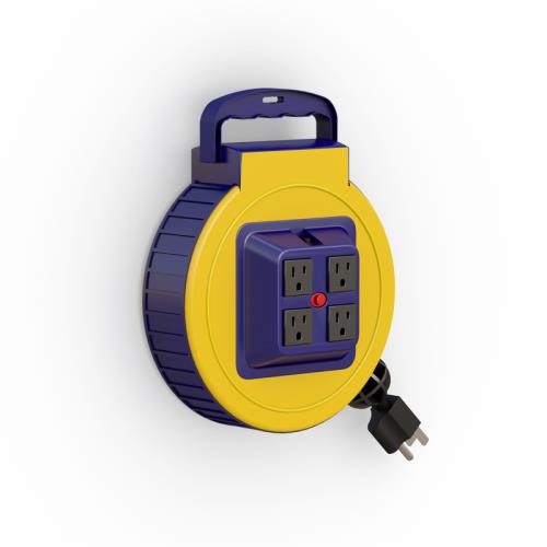 Introducing the Retractable Power Cord Reel, a robust solution designed to meet all your power connectivity needs. Crafted for durability and efficiency, this power strip boasts a heavy-duty construction, accommodating up to 4 plugs and offering an impressive 25ft. power cable extension. With 4 grounded outlets, a built-in circuit breaker, and a Power ON indicator, it ensures a reliable and safe power source for your devices.
