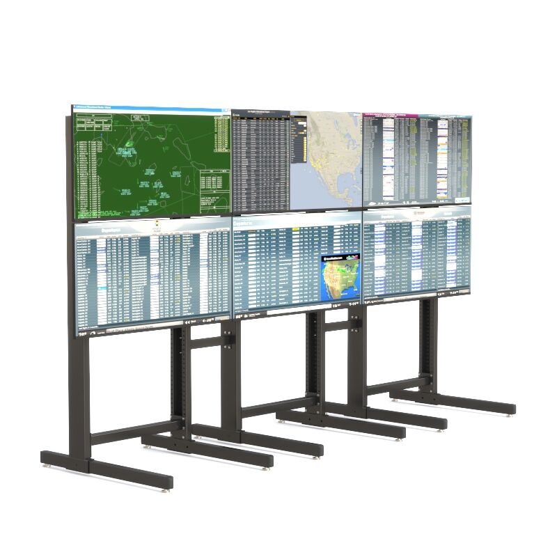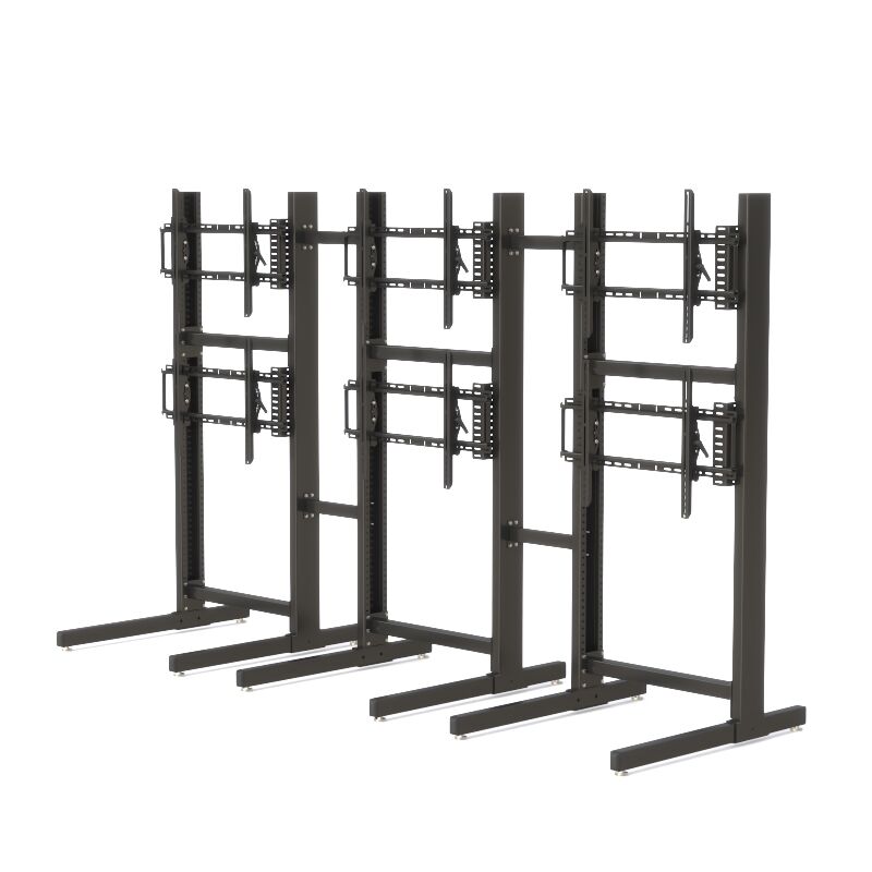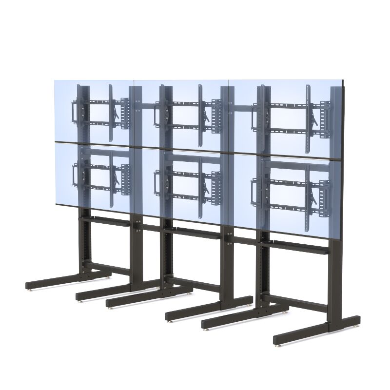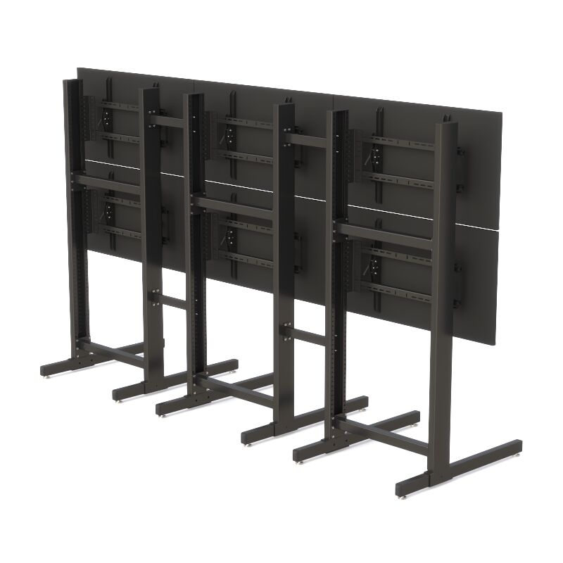 Great for command centers, control rooms, and commercial centers. This monitor floor stand can mount 6 large LED monitor displays. A durable and stable product that provides a great viewing experience from high-resolution displays. This multiple monitor floor stand is very useful in all applications that require large video displays, or for advertising in high traffic areas such as, malls, shops, airports, and train stations.