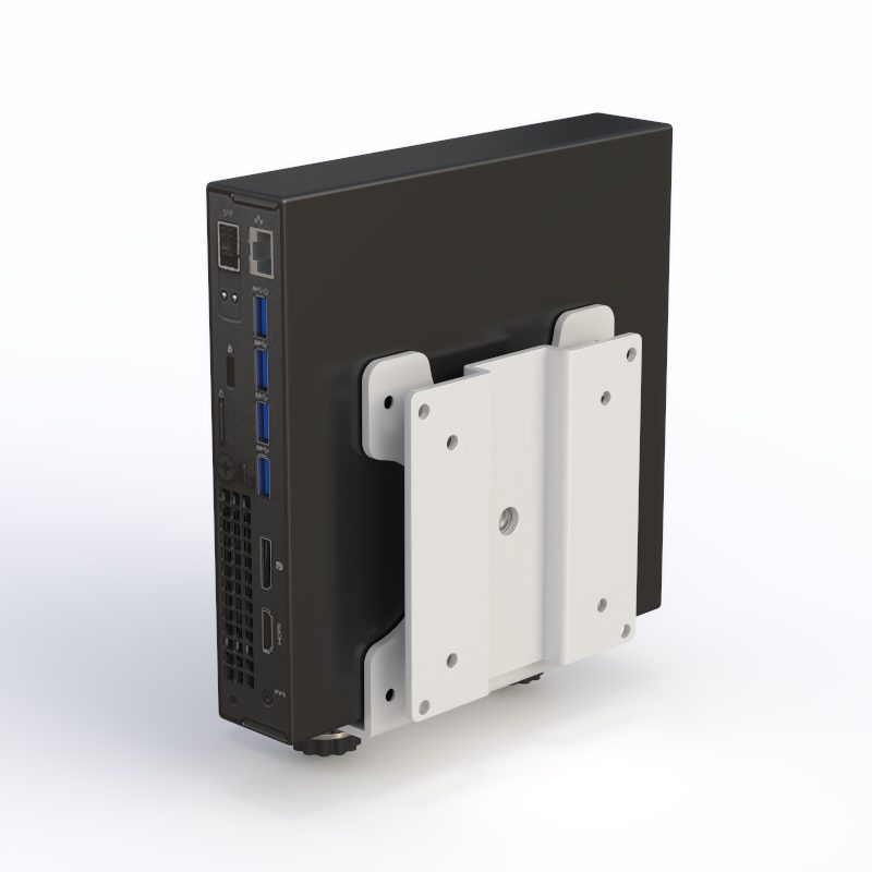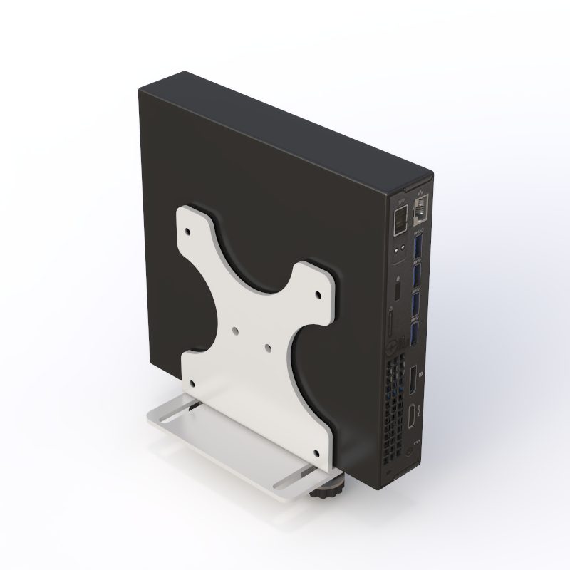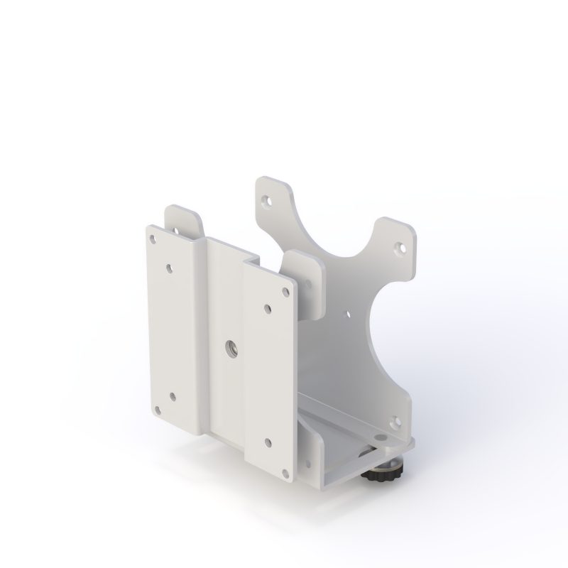 This wall-mounted CPU holder is designed to securely mount compact computers behind monitors or on flat wall surfaces while maintaining a clean, space-efficient workstation layout. Its slim, ergonomic profile keeps CPUs elevated and protected, helping reduce desk clutter and improve airflow around sensitive hardware.