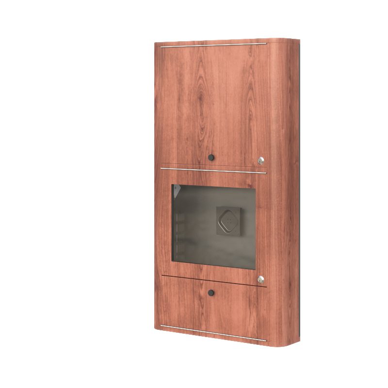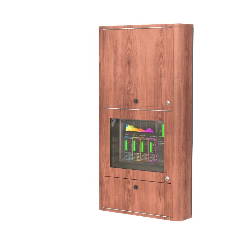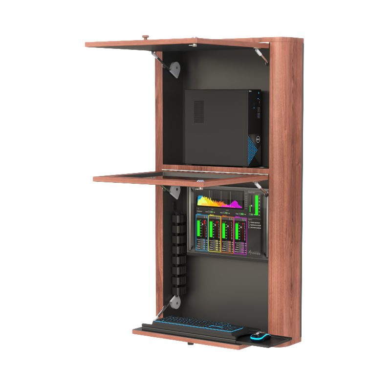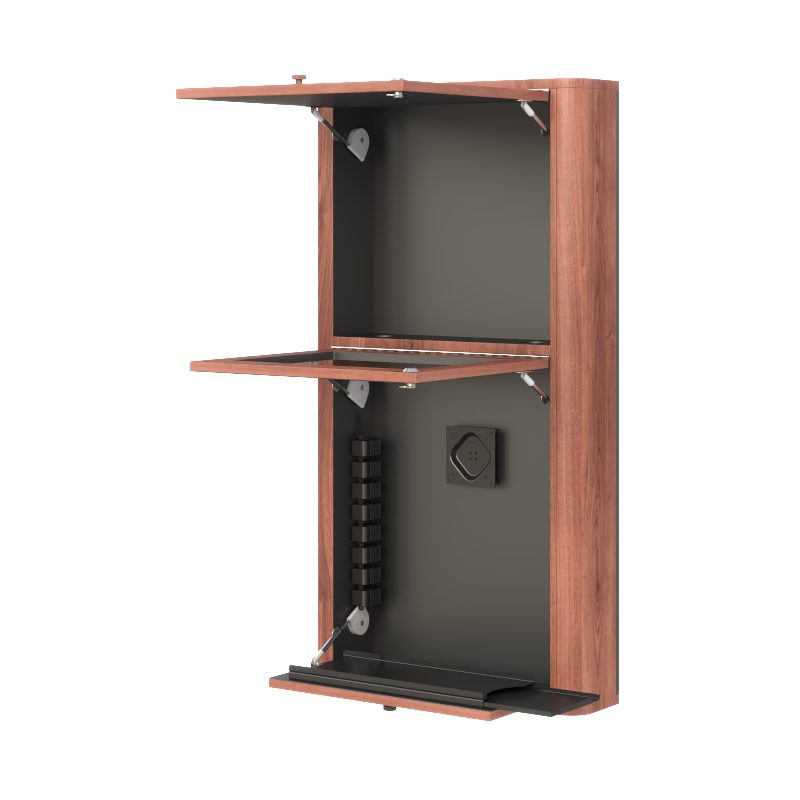 - Upward opening hinged top panel provides easy access. Middle panel (also hinged for access) includes Plexiglas insert to protect monitor