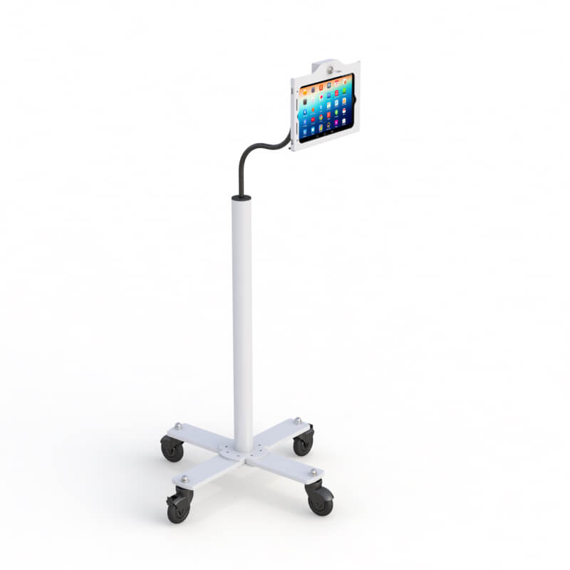 This Rolling iPad Floor Stand securely holds the tablet device thus, preventing it from damage. The ports and buttons are fully accessible while also protecting the device from tampering or theft through its powerful lock. This gives users the peace of mind and the convenience of having an easy-to-move tablet holder that is secure and mobile. AFC‘s best Rolling iPad Floor Stand ever designed.