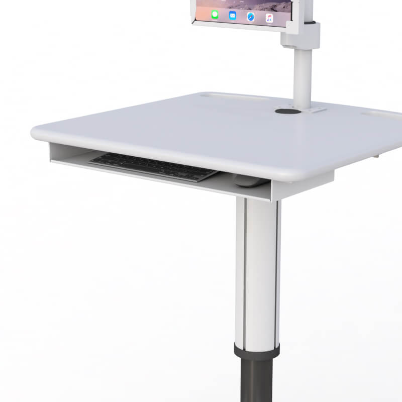 Ideal for office workstations, medical carts, and educational environments, this tray enhances user comfort and productivity by positioning input devices at an optimal height and angle.