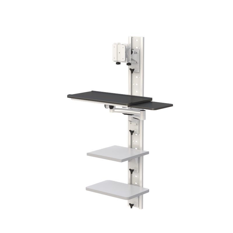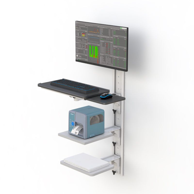 - This AFC computer wall mount begins with 48″ of steel wall-mounted track