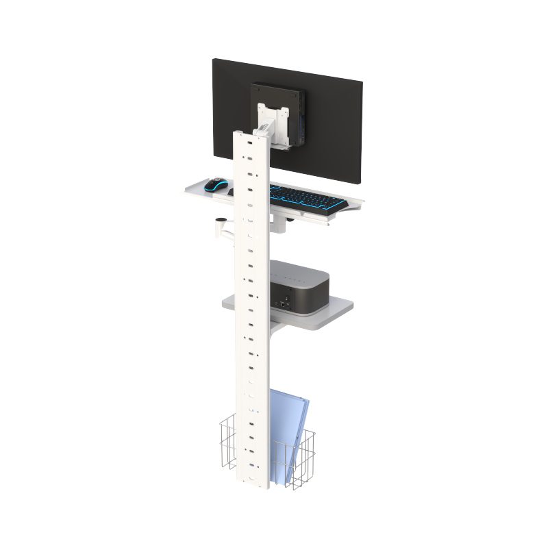 - This AFC computer wall mount begins with 48″ of steel wall-mounted track