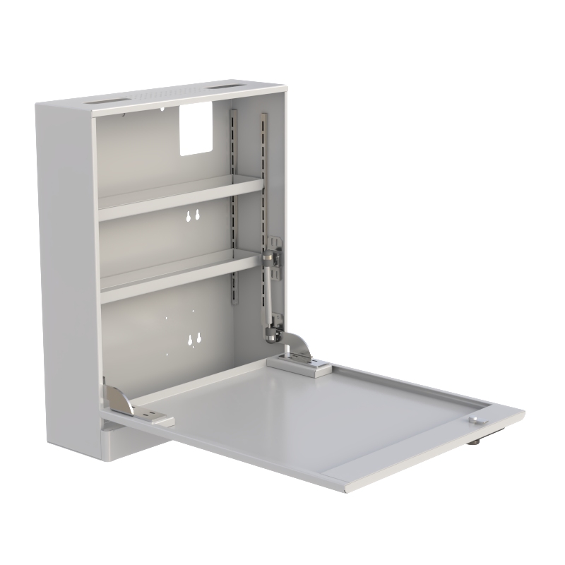 This wall-mounted secure storage cabinet with integrated workspace tray is designed to combine storage, security, and functionality into one compact solution. Ideal for healthcare, laboratories, and professional environments, this unit provides organized storage for supplies while offering a convenient fold-down work surface for daily tasks.