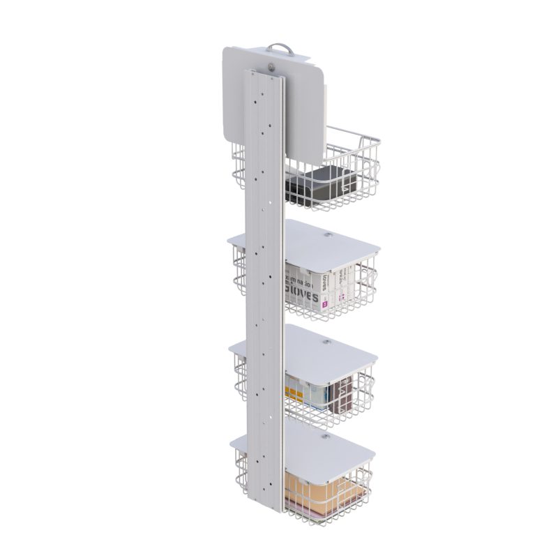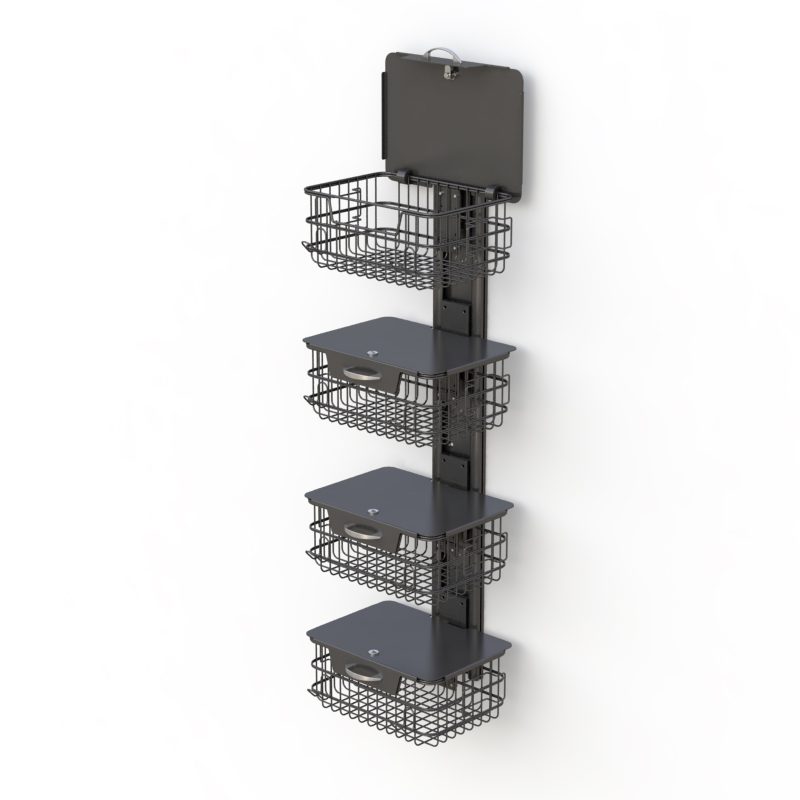 This robust wall mount track system with multiple locking secure baskets, that are attached to a sturdy steel vertical wall track. Made with high-grade materials and powder-coated to ensure more extended lifetime use.